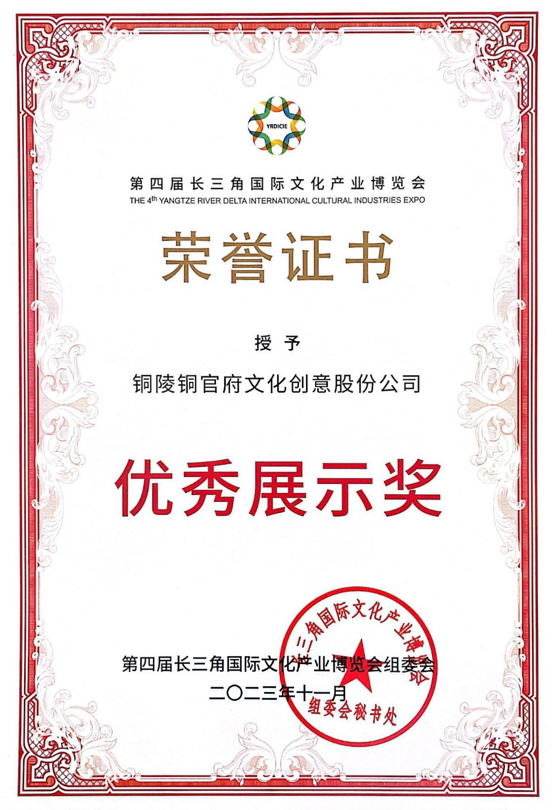 11月16日—19日,第四屆長三角國際文化產(chǎn)業(yè)博覽會(huì)在國家會(huì)展中心(上海)舉行。我公司焚失法非遺技藝系列作品參展并榮獲“優(yōu)秀展示獎(jiǎng)”。展會(huì)現(xiàn)場,參觀者零距離欣賞寫真銅藝、彩銅工藝品以及景泰藍(lán)工藝品,感受中國傳統(tǒng)文化綻放出來的多彩魅力。銅官府作為文化產(chǎn)業(yè)示范基地,通過焚失法、景泰藍(lán)等傳統(tǒng)工藝的傳承與創(chuàng)新,借助國家級(jí)、國際化、綜合性的文博會(huì)平臺(tái),讓承載中國文化、賦予時(shí)代內(nèi)涵的銅文化走的更廣更遠(yuǎn)。